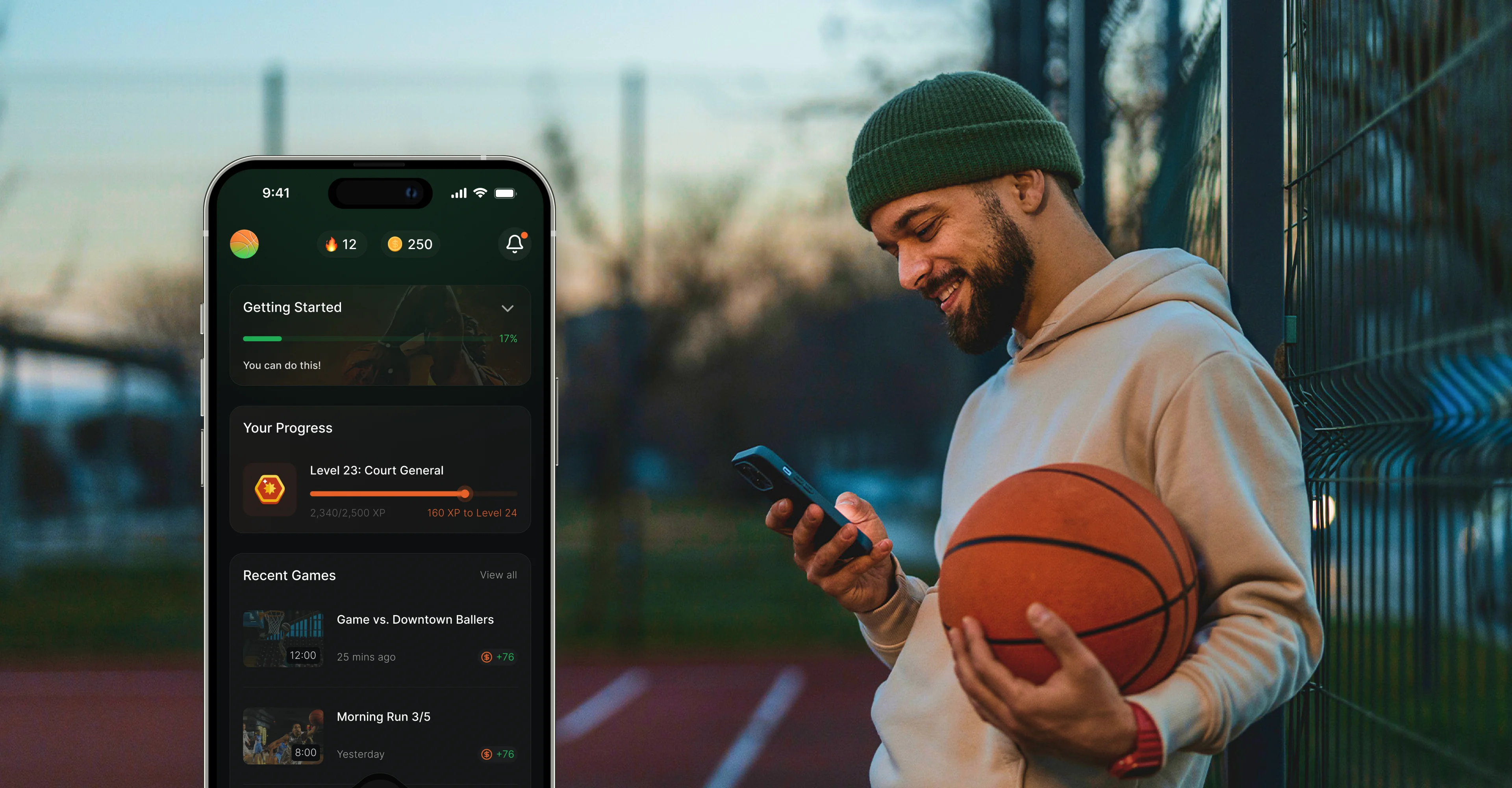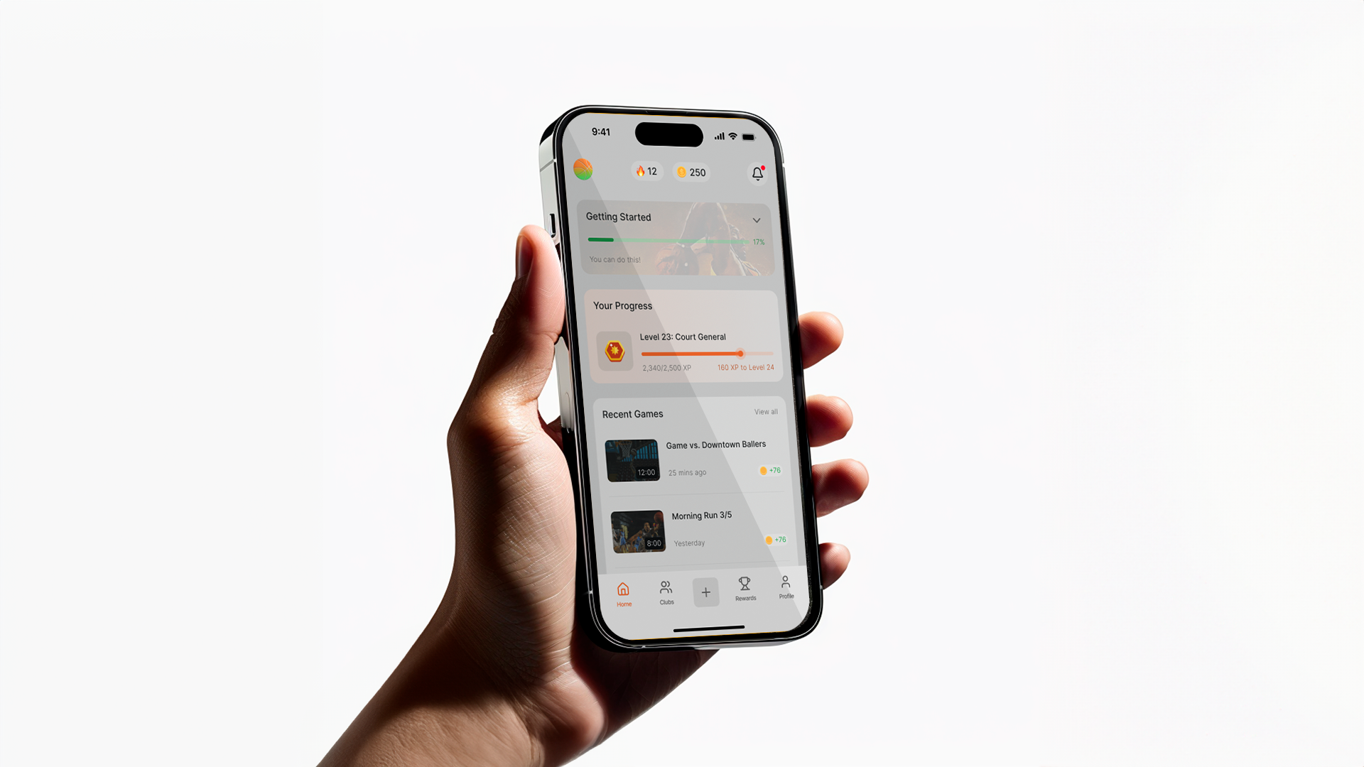 We built the app’s engagement model inspired by Duolingo’s streaks and leveling system. Progression, badges, and coins turn pickup ball into an RPG-like journey.