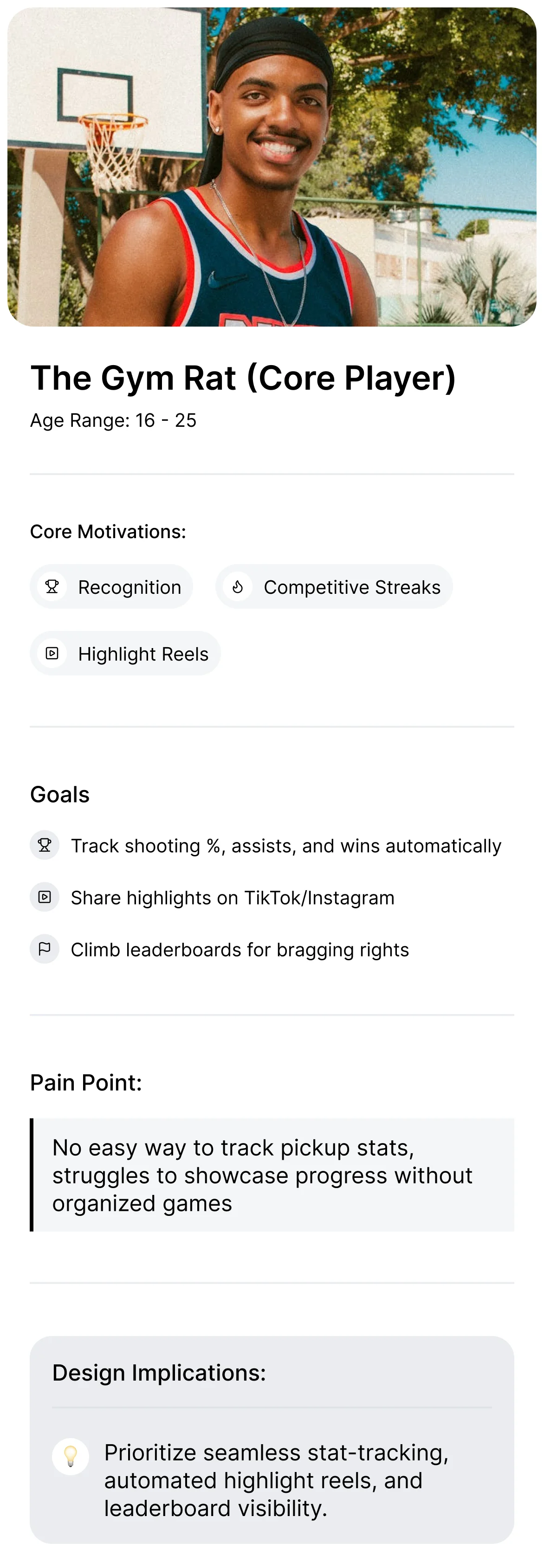 Basketball is as much about bragging rights and clips as it is about stats. So the design needed to feel lightweight and hype-driven, even when surfacing deep analytics.