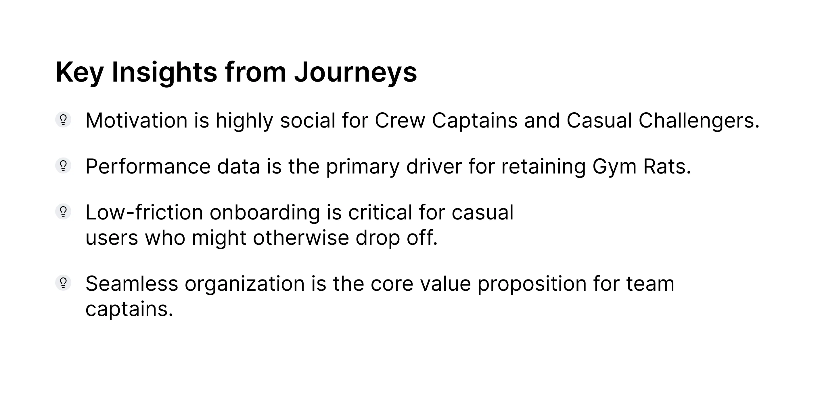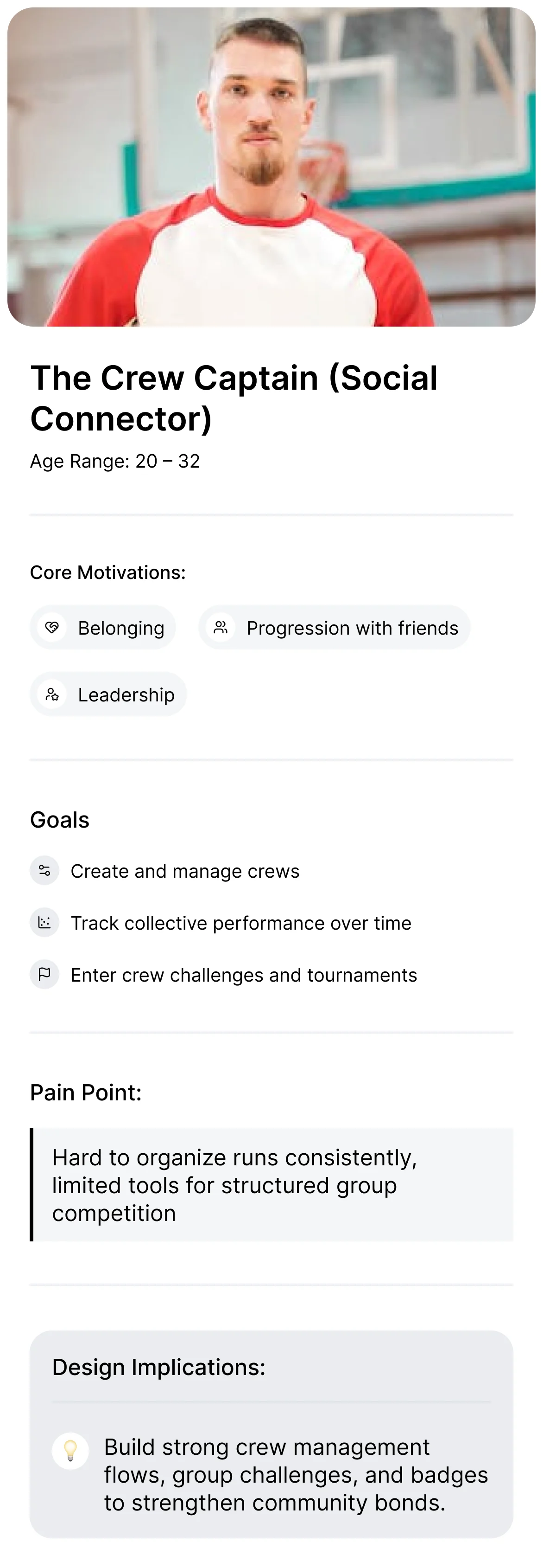 Narrative framing matters: Positioning features as part of a “journey” (onboarding → crews → challenges → stats) helped stakeholders and future users understand the app’s story.