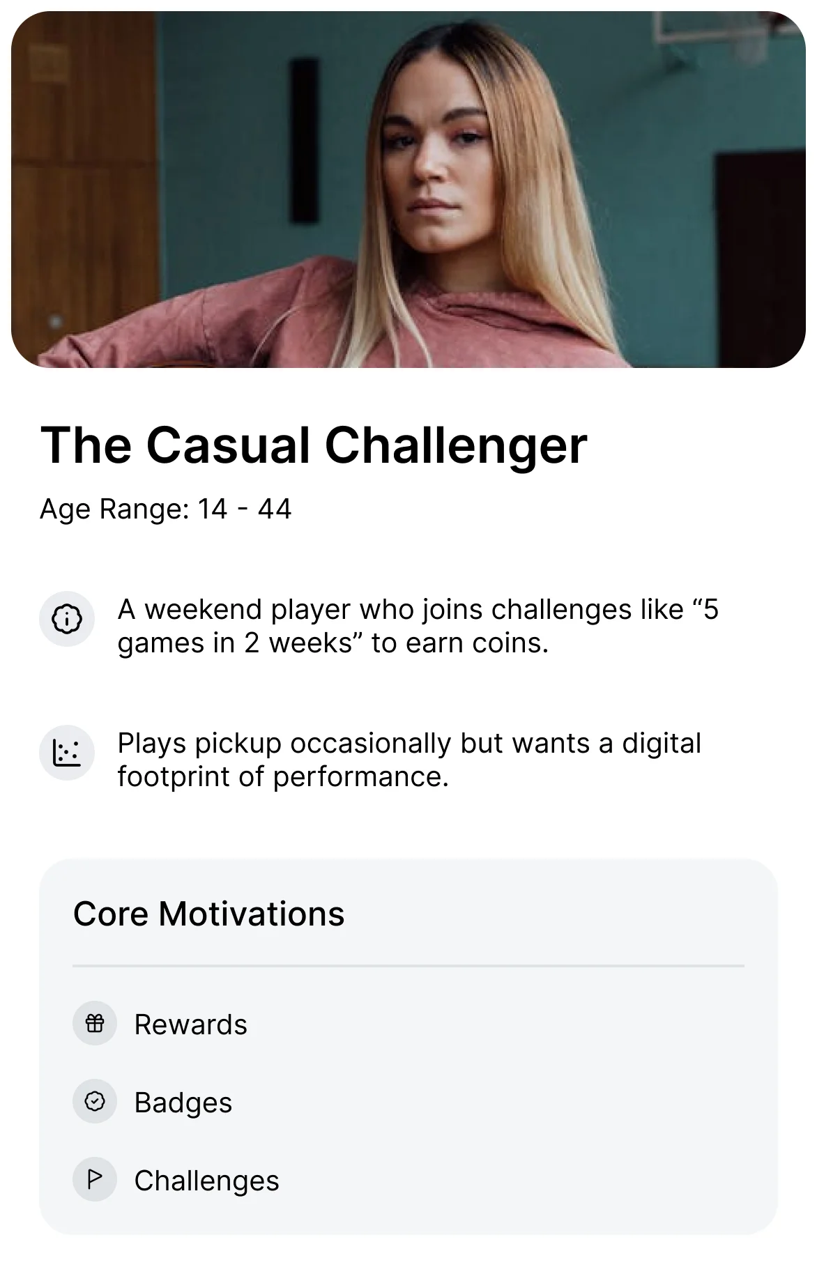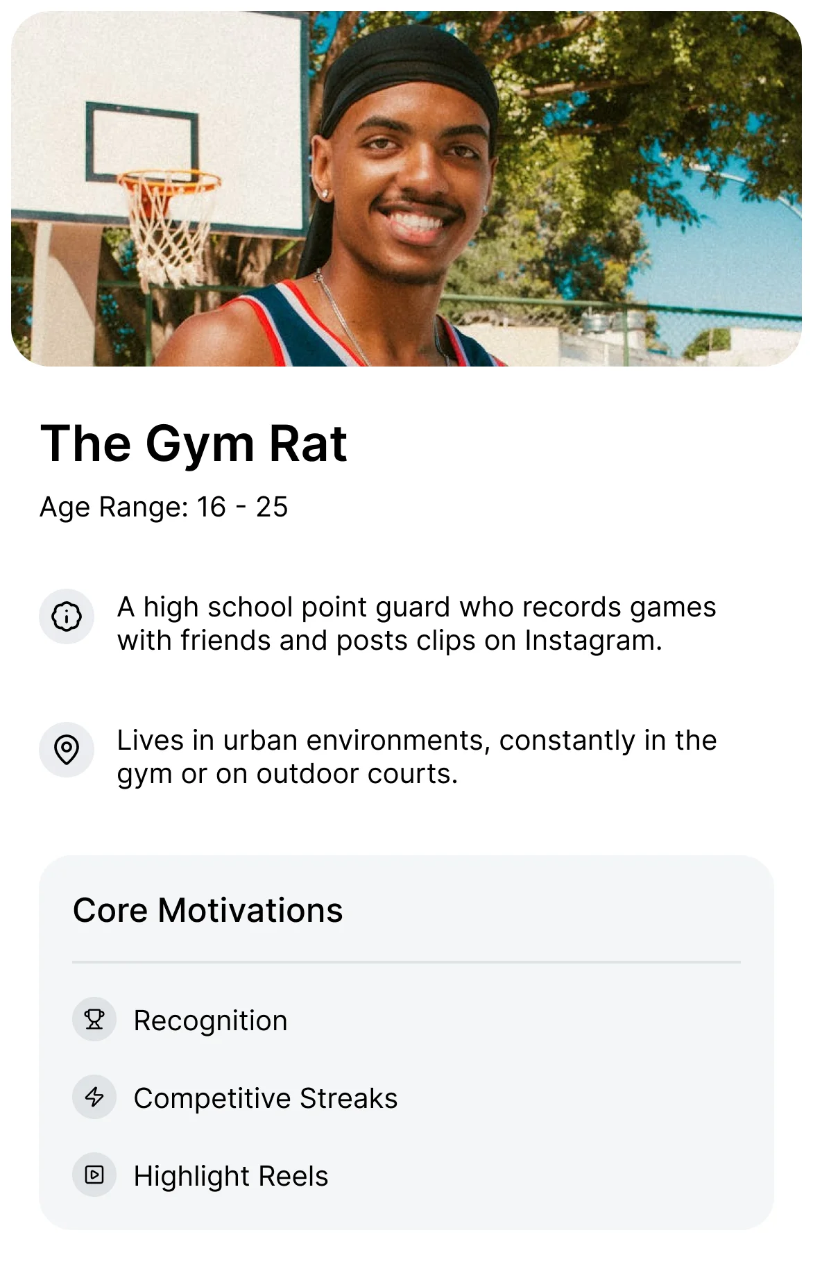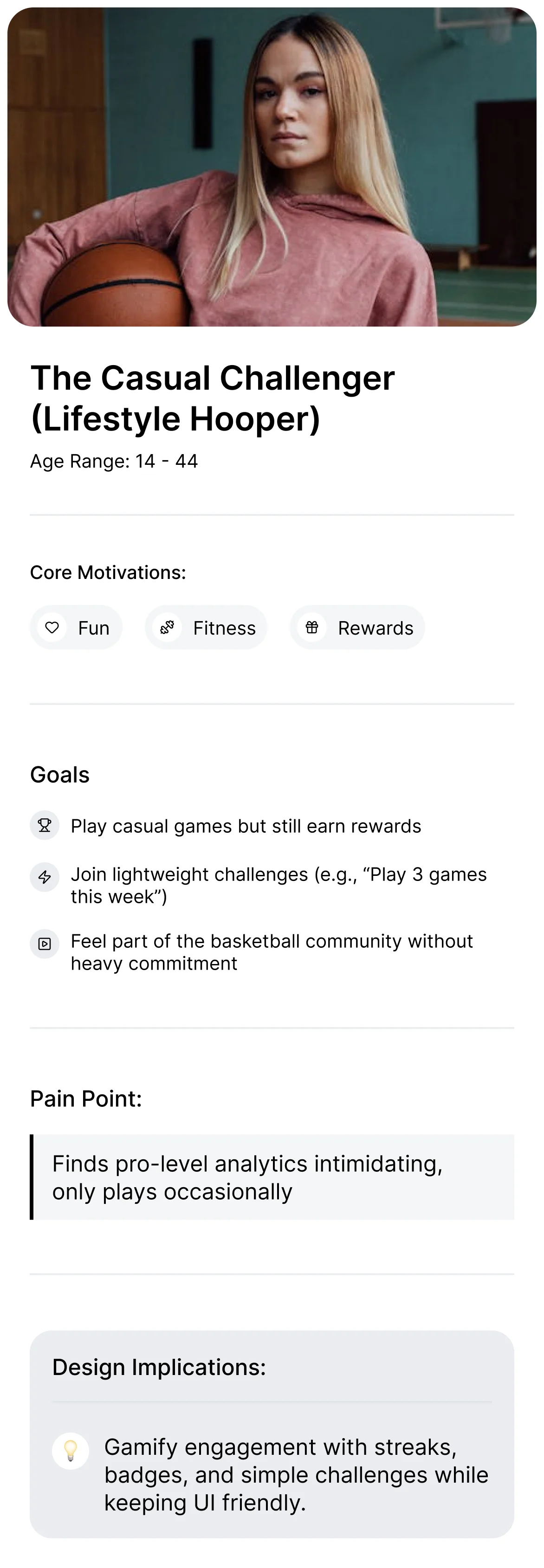 While heavily male-dominated, we designed with an inclusive tone. Basketball is global, and inclusivity strengthens community adoption.